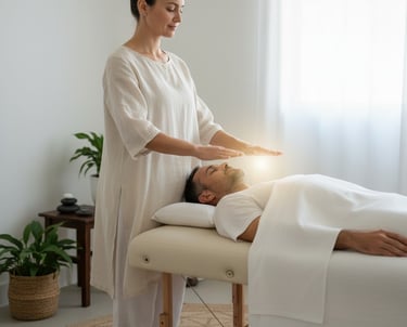 Reiki healing sessions and past life trauma release to restore harmony in relationships and health.
